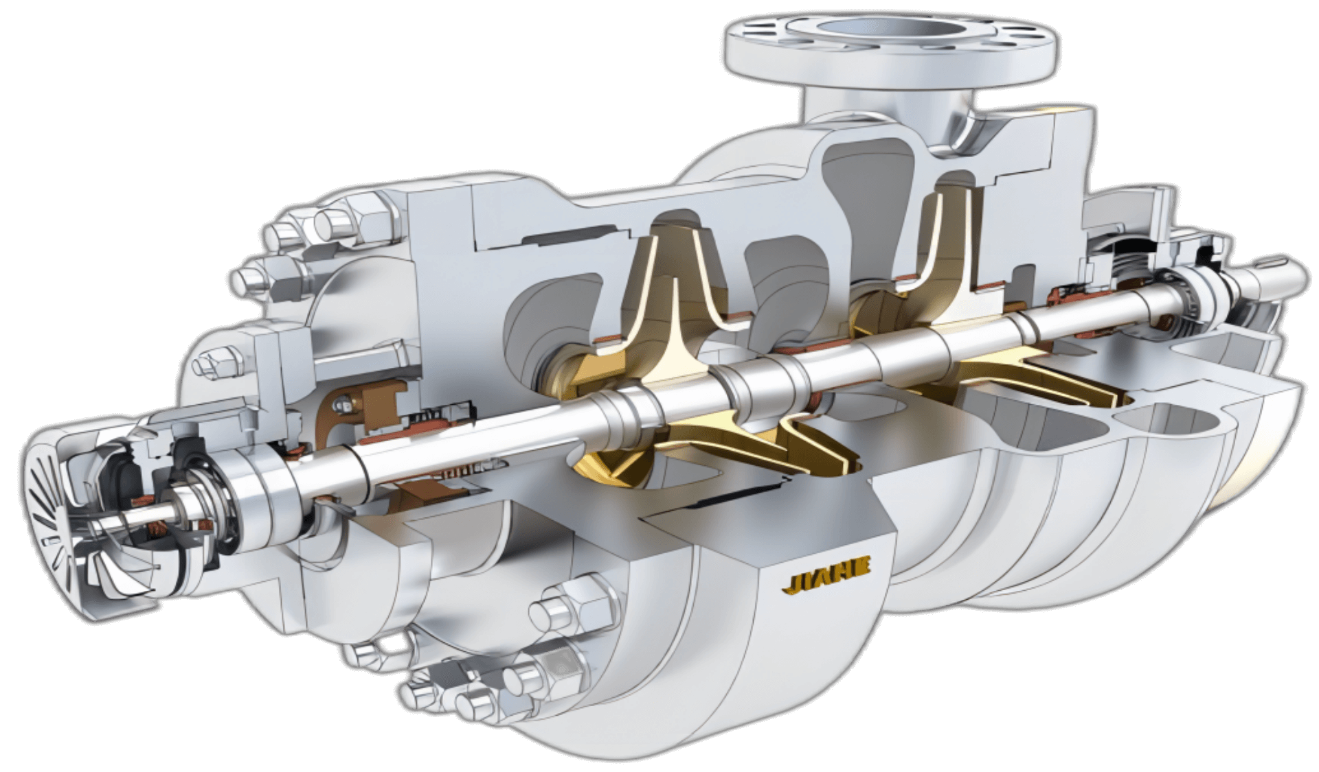 JHBB/JHBD泵(BB2)為兩級、徑向剖分兩端支承離心泵。符合API610-11th標準。JHBB為首級單吸,JHBD為首級雙吸。進出口法蘭尺寸滿足ANSI或ISO標準。密封腔的設(shè)計符合ISO21...